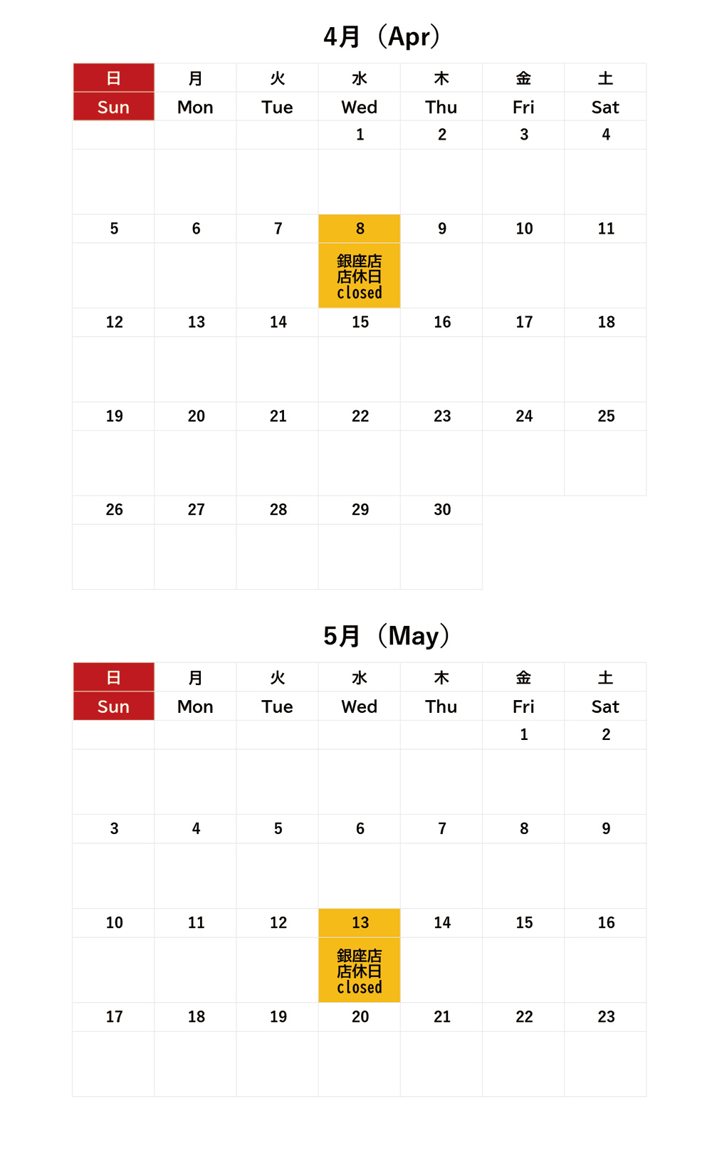 この度、労働環境の改善及び店舗設備点検のため、改めて店休日を設けご案内させていただく運びとなりました。